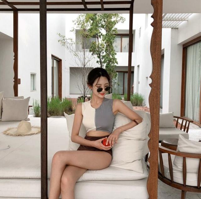 ツートンカラーがお洒落なワンピース水着。