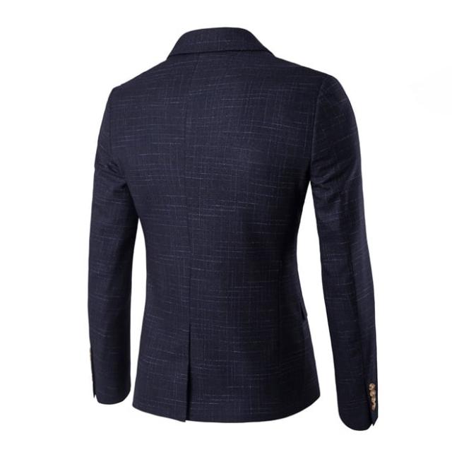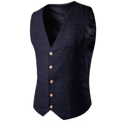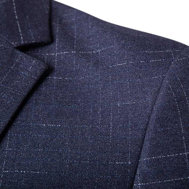 二つボタンのテーラードジャケット&テーパードパンツ&ベストの3点セット。