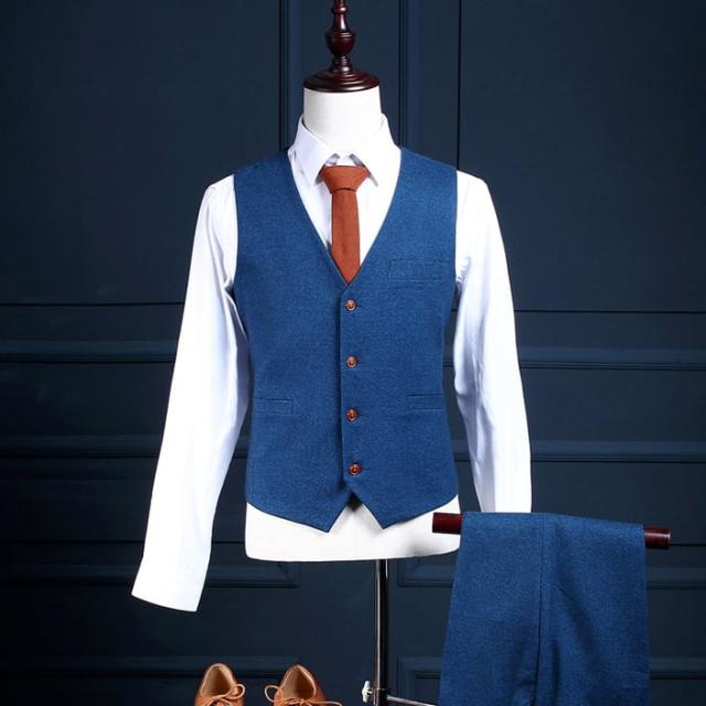 トップス ボトムス ベスト ズボン 上着 スーツ 袖あり 長袖 襟付き スリム タイト 細身 ストレート Iライン ポケット 前開き ダブルボタン スリーピース 薄手 3点セット スリーピース 大人