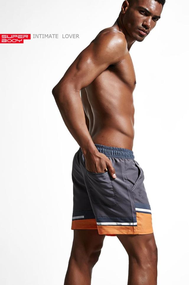 オーソドックスな形ながらトレンドのワイドシルエットの男性用ハーフパンツ水着です。