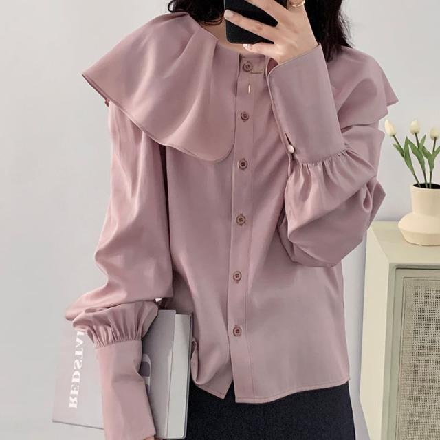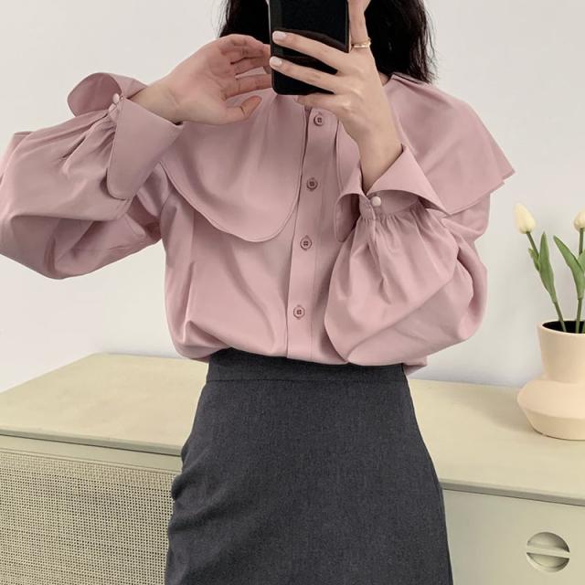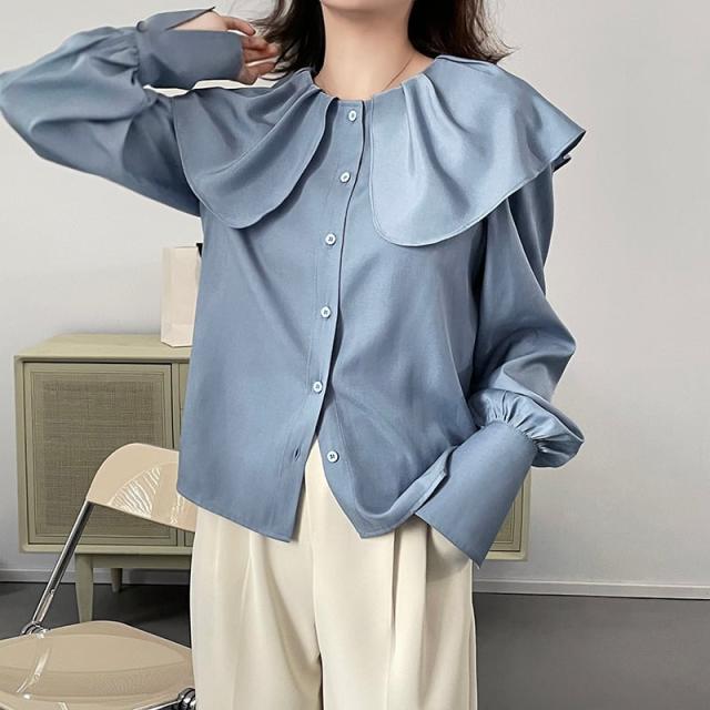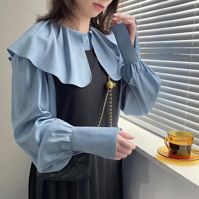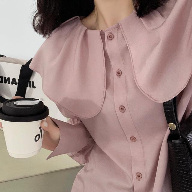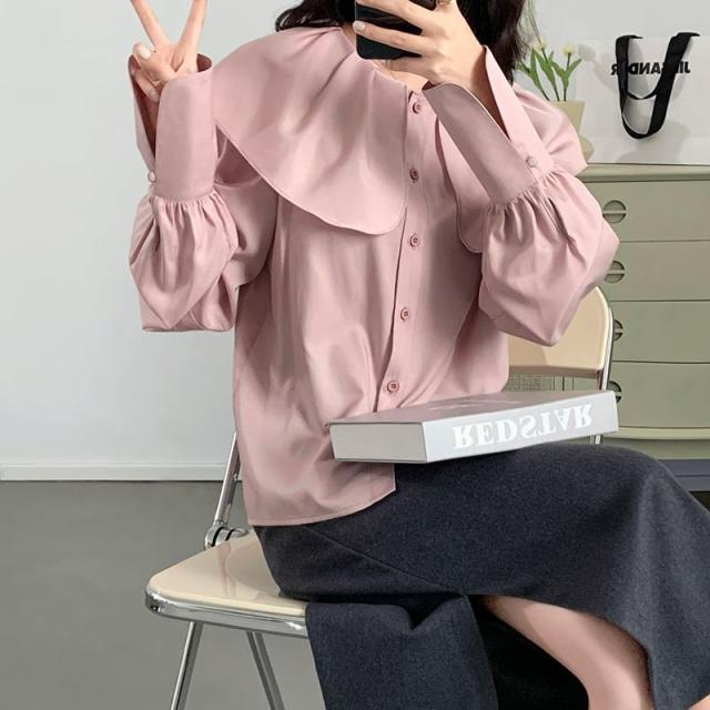 ブラウス レディース トップス 人気 おすすめ おしゃれ お洒落 激安 安い 送料無料 プチプラ 長袖 ロング 美シルエット 華奢見え ビッグカラー 無地 ロングカフス 韓国 新作 可愛い