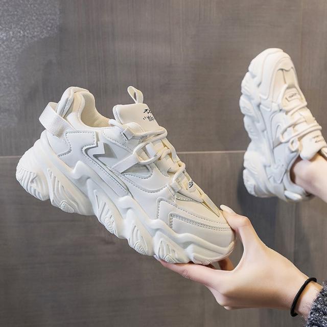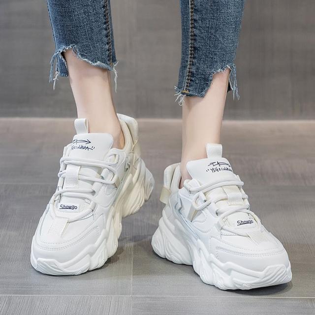 脚長効果抜群の厚底スニーカー。