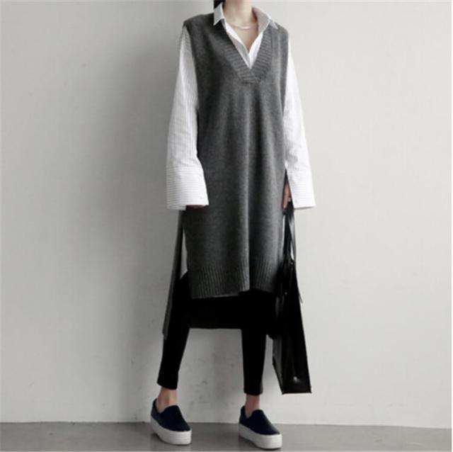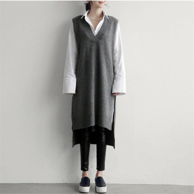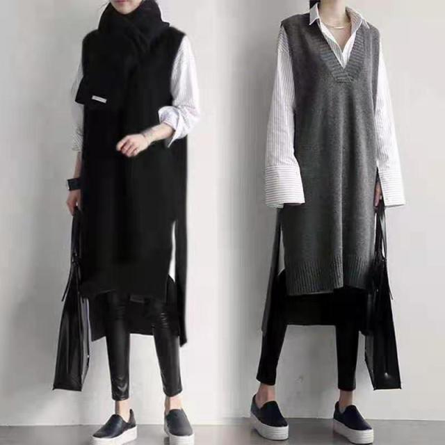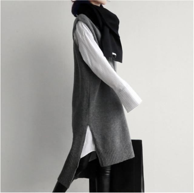 トップス ニットソー セーター ベスト ロング ロング丈 袖なし ノースリーブ Vネック アシンメトリー ニット かわいい 大人可愛い きれいめ シンプル カジュアル 大人 おしゃれ お洒落