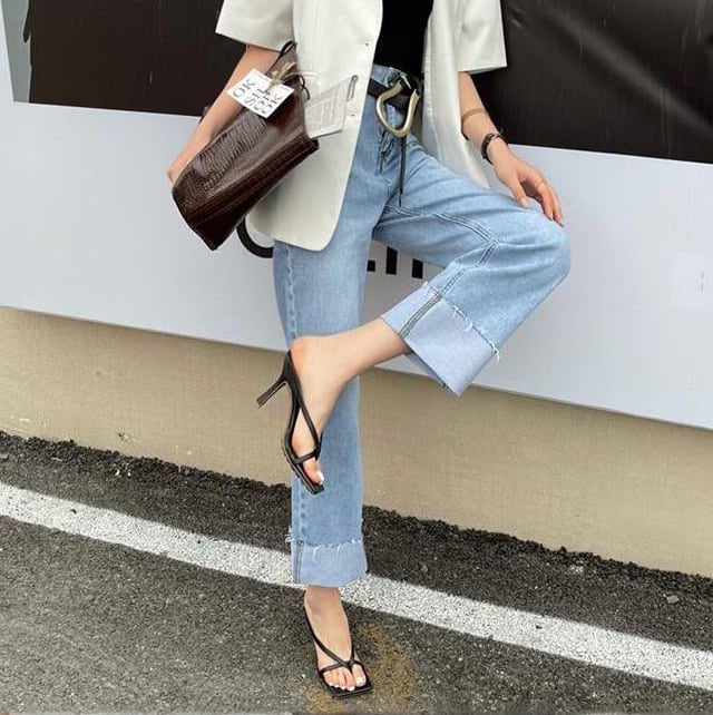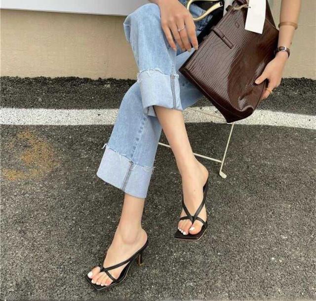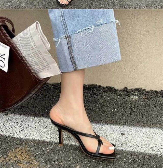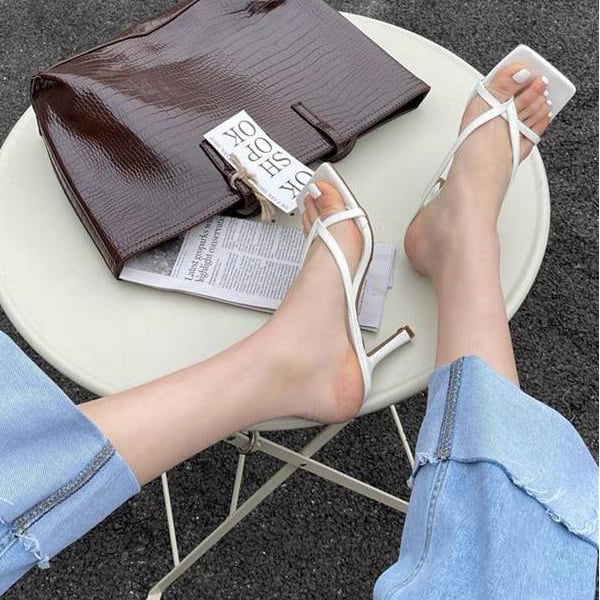 足元にモードな雰囲気を演出してくれるハイヒールのトングミュール。