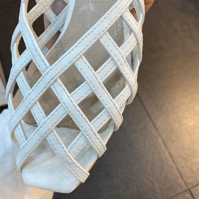 オープンタイプのスクエアトゥでほどよいモード感あり。