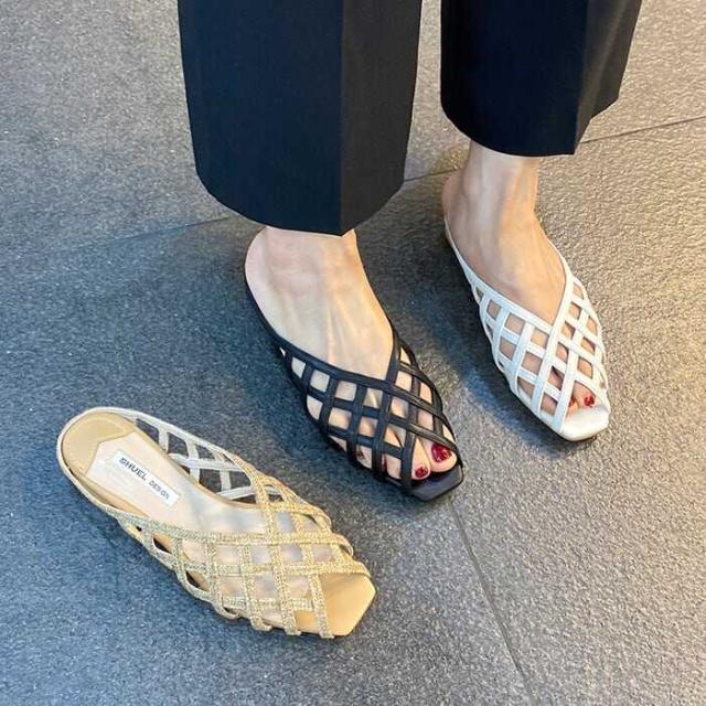 見た目にも涼しげなメッシュのぺたんこミュール。