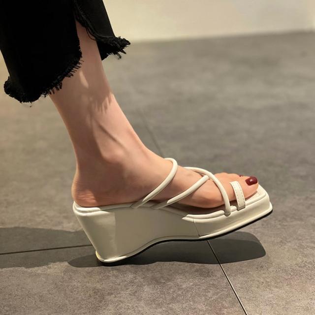 安定感のある厚底サンダルは疲れにくく普段使いしやすい。