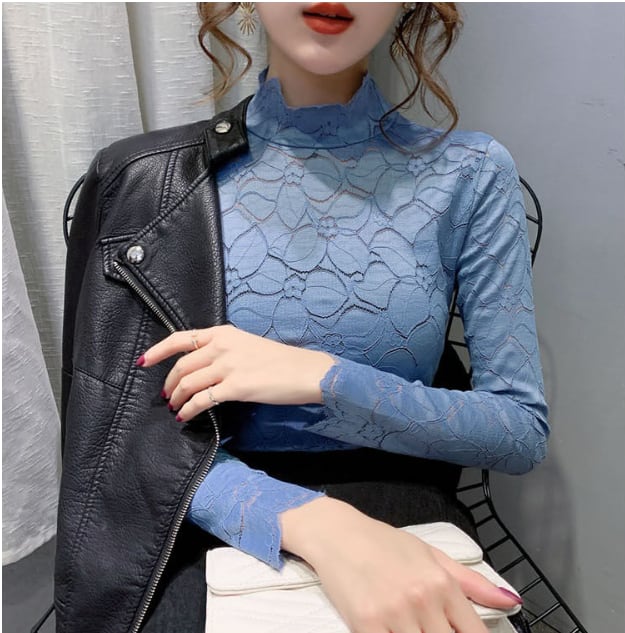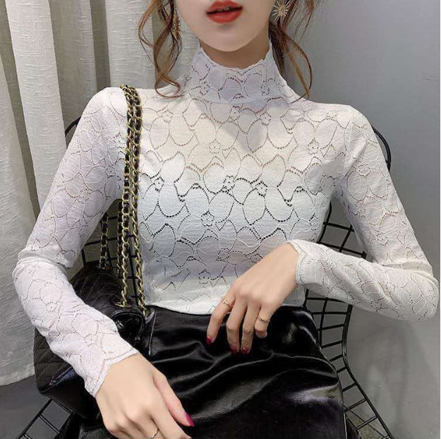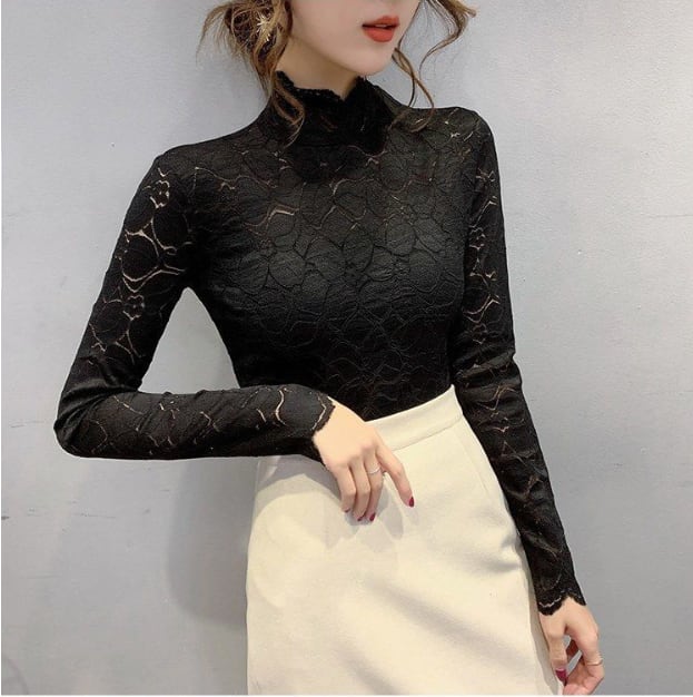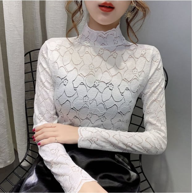 トップス ハイネック レース ブラウス 透け感 花柄 フラワー 人気 おすすめ おしゃれ お洒落 激安 安い 送料無料 プチプラ 可愛い かわいい 韓国 かっこいい カジュアル 大人 上品 きれいめ