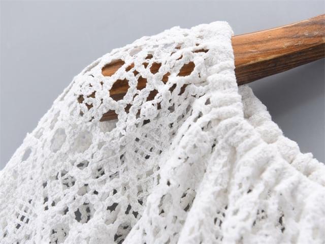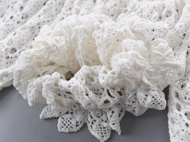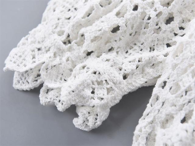 ギャザーのふんわりした立体感がフェミニンなクロシェの編みカットソーです。