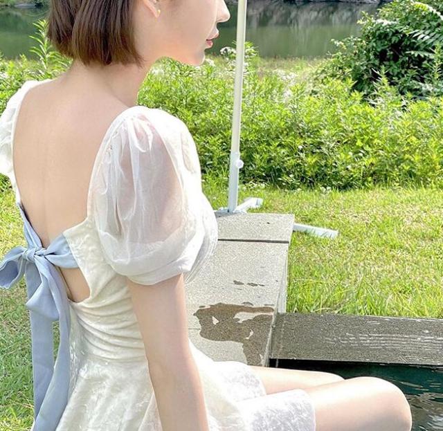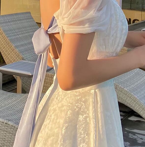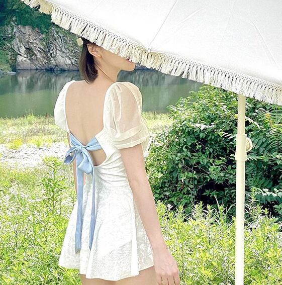 バックの大きめリボンがより可愛らしさを引き出してくれます。