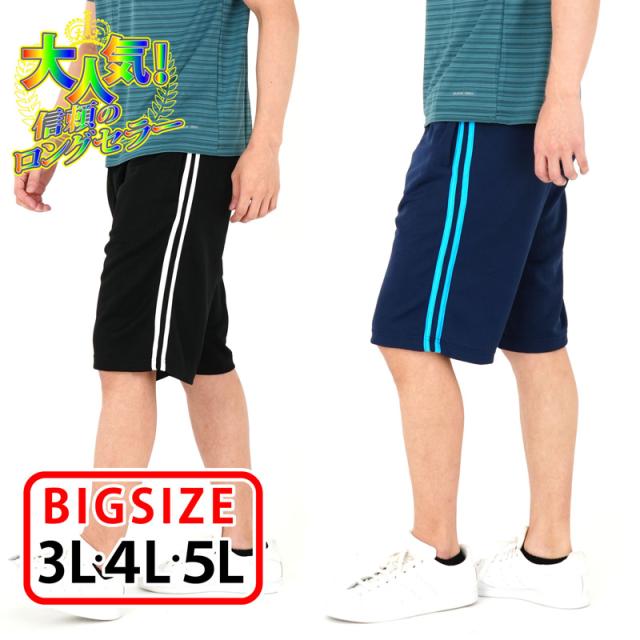 ハーフパンツ メンズ スポーツ 大きいサイズ ジャージ ショートパンツ 短パン 【3211】さらっとした速乾素材 2本ライン