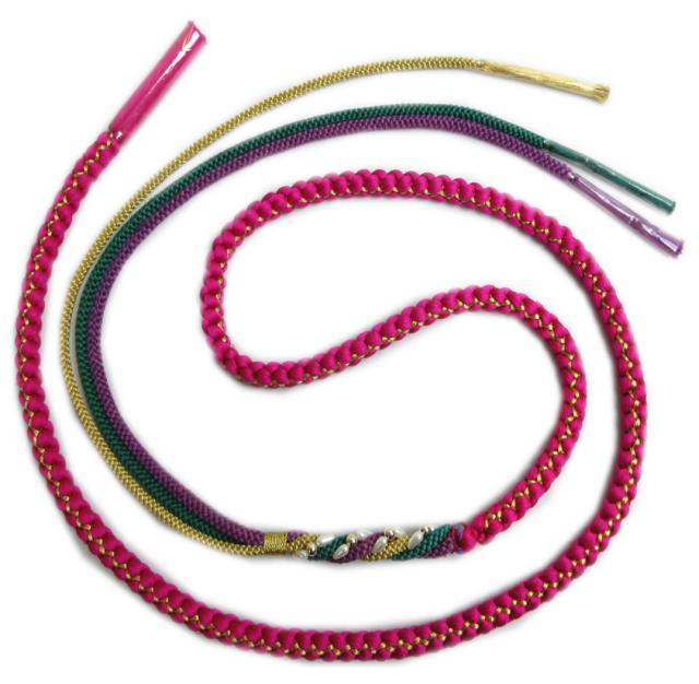 3色の先割れ紐が自慢の華やかな帯じめ。