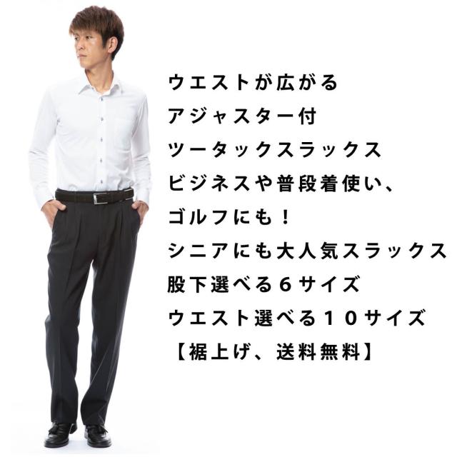 スラックス メンズ ワイド ゴルフ ツータック アジャスター付き ウォッシャブル 家庭洗濯 ワーキング ビジネス 裾上げ加工 送料無料