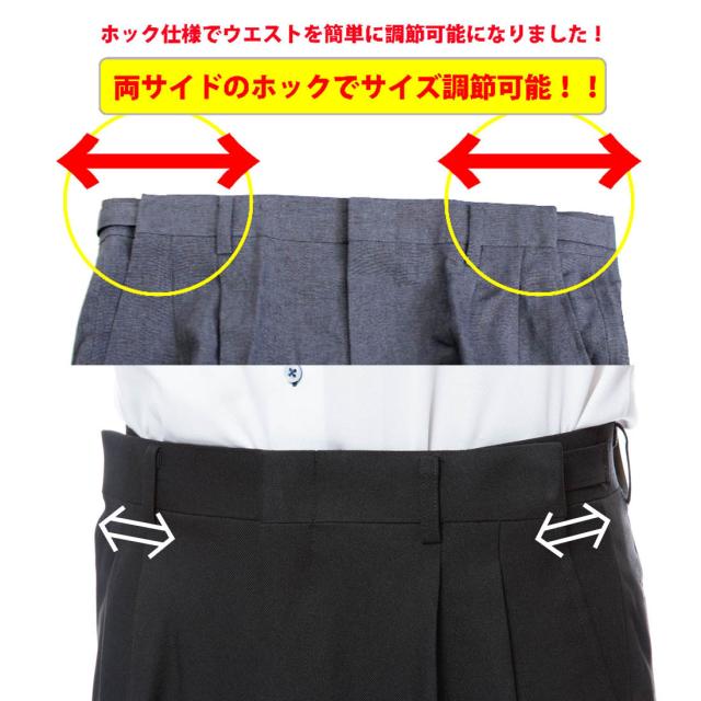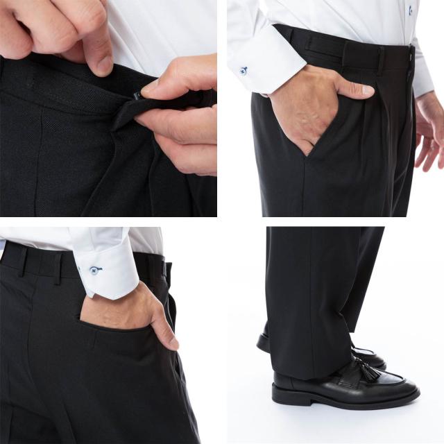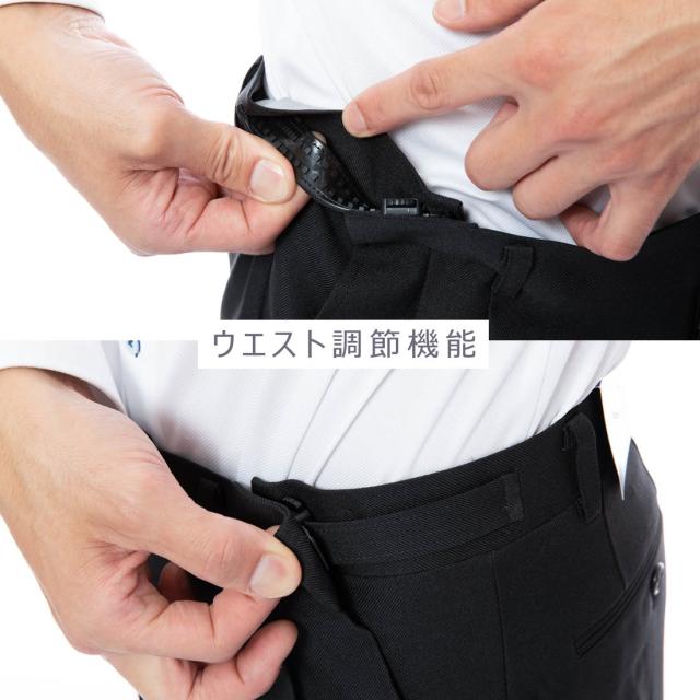ウエストが約5cm上下する、アジャスター付きのスラックス