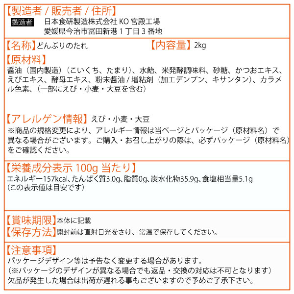 日本食研 天丼のたれ 2kg 業務用 めんつゆ 万能つゆ たれ つゆ かつお えび だし 天ぷら 飲食店 時短料理