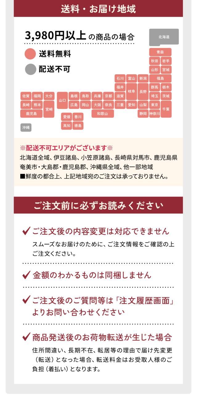 3,980円未満の送料無料の商品は下記の送料が加算となります。