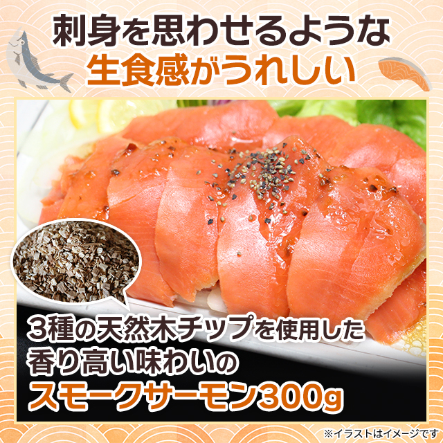 ・3種類の天然木チップを使用して燻した、薫り高いスモークサーモン。