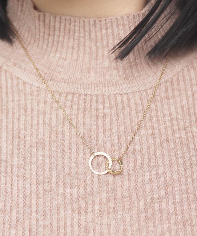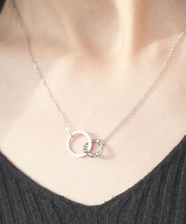 大小の槌目ダブルリングが女性らしい印象のネックレス。