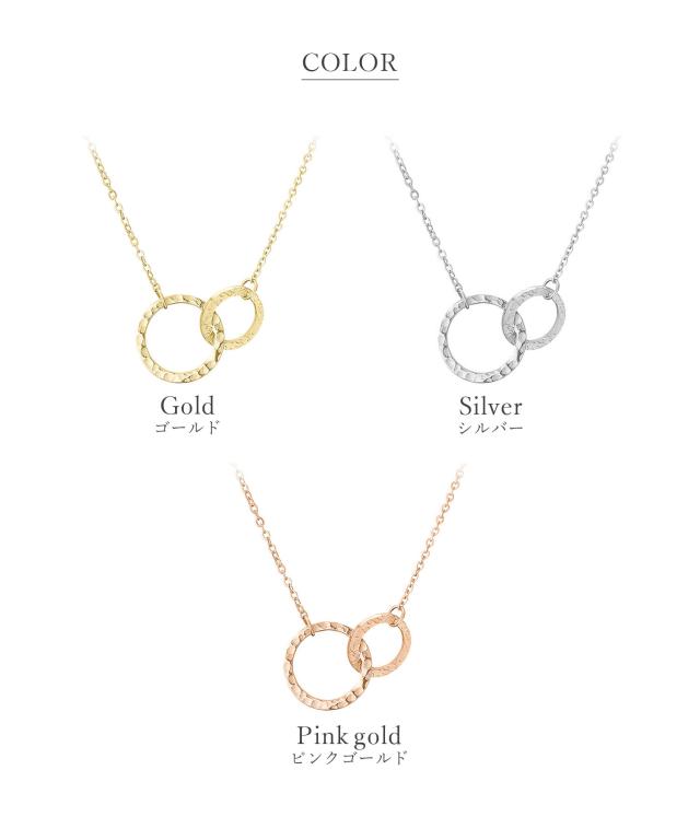 ネックレス レディース 金属アレルギー ダブルリング ステンレス 槌目 細め アクセサリー 大人 おしゃれ 大人可愛い シンプル ゴールド シルバー ピンクゴールド 通勤 通学 金属アレルギー対応 つけっぱなし 普段使い ダブル リング ステンレスネックレス かわいい 可愛い
