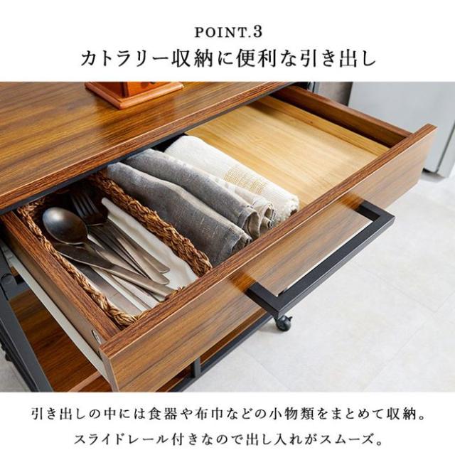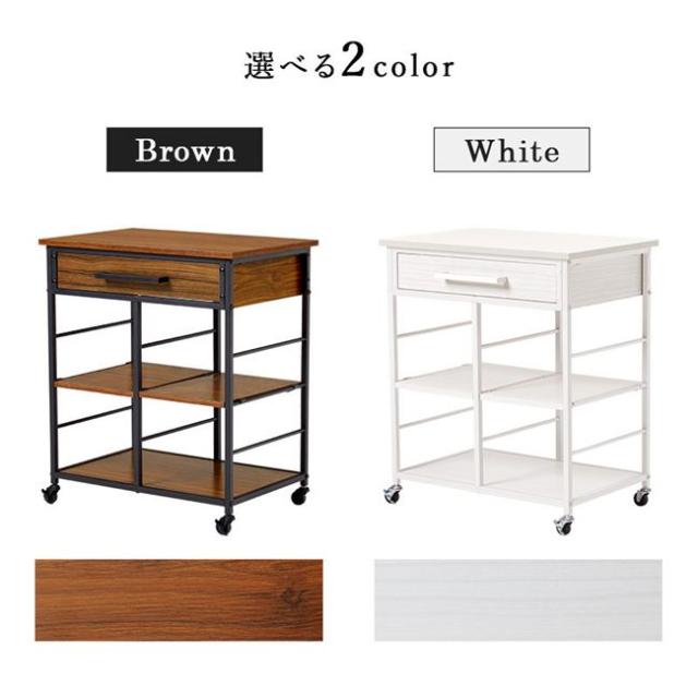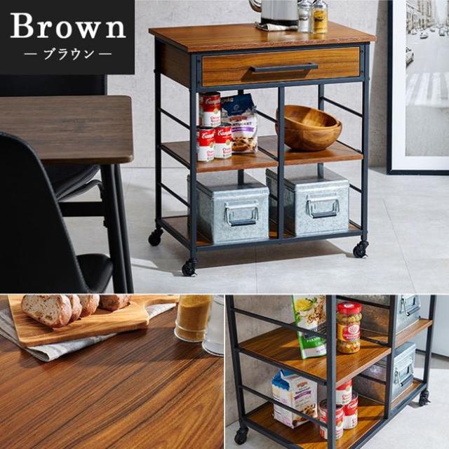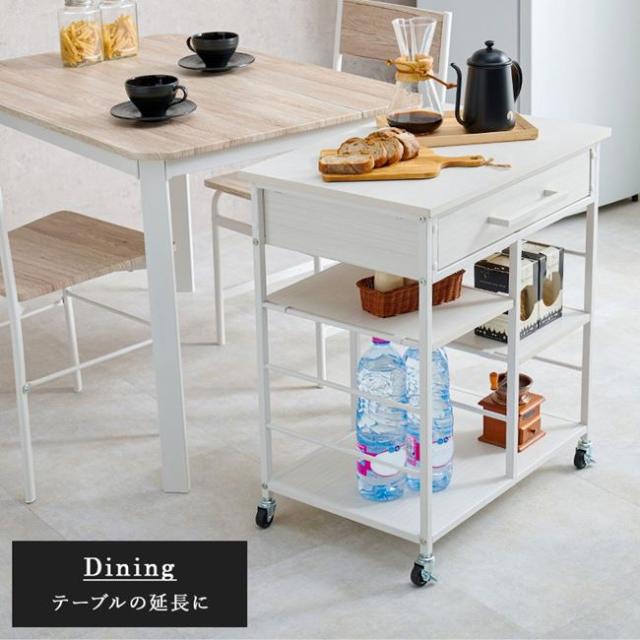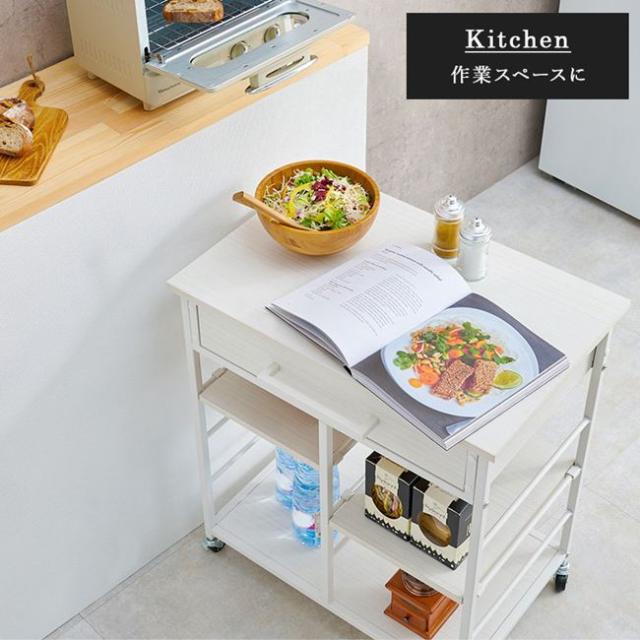 キッチンワゴン 補助テーブル 幅60cm おしゃれ 可動棚 引き出し収納 キャスター付き