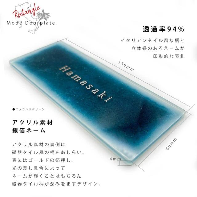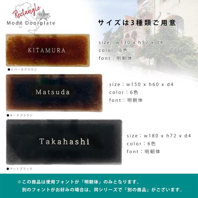 表札 おしゃれ 戸建て 宅配ボックス 郵便ポスト アクリル ドアプレート 長方形 ネームプレート 穴開け不要 工事不要 オシャレ スマート シンプル リッチ 高級感 貼るだけ 軽い 軽量 マンション アパート 賃貸 戸建 両面テープ 接着 箔押し 銀箔 Mode Doorplate 明朝体