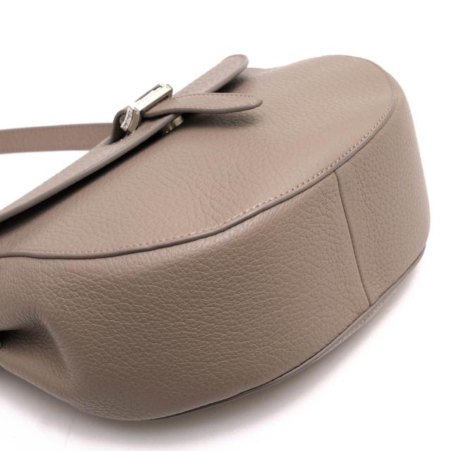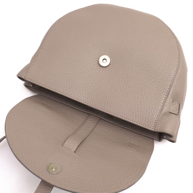 ラウンド型で女性的なフォルムのショルダーバッグ。細かなシボ加工を加えた立体感のあるシュリンクレザーを使用。もっちりとした弾力性があり、凹凸による陰影が生まれ、味わい深い表情・奥行きをみせてくれます。女性らしく小ぶりなサイズ感で、小物用の収納スペースもしっかり完備されています。