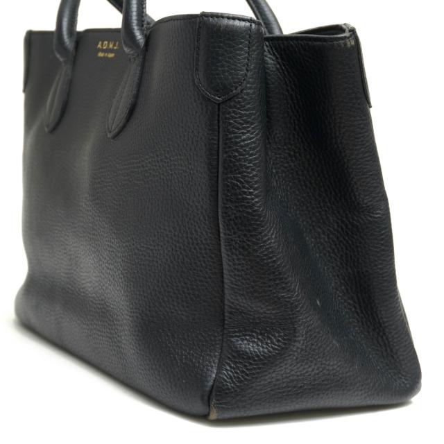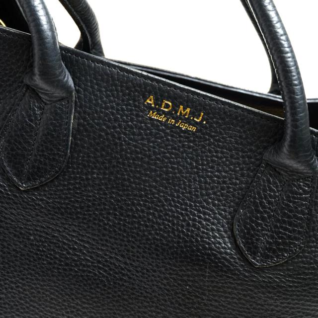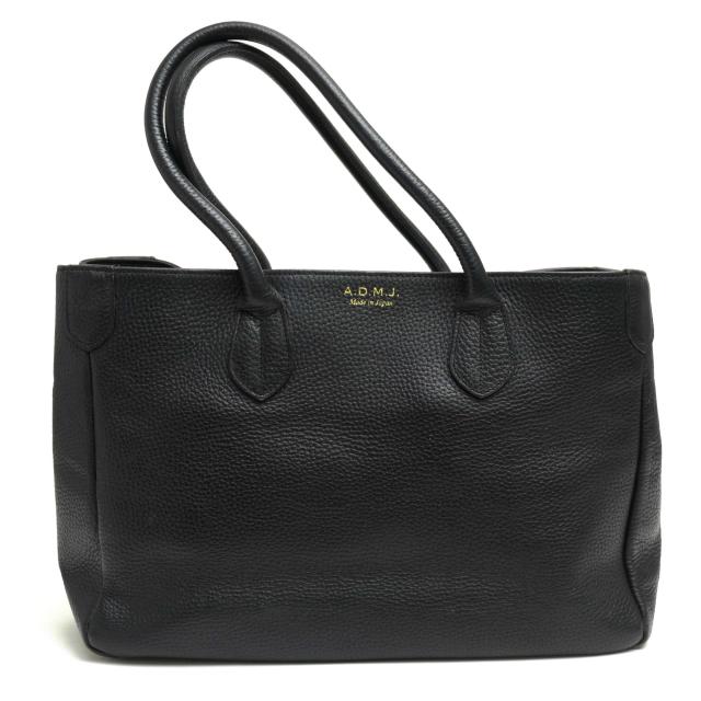 ADMJの人気トートバッグ。上質な牛革シュリンクレザーを使用しているので、高級感があり、傷つきにくいのが特徴です。マチも広く、煩雑になりがちな荷物を整理できるのはもちろん、貴重品の収納にも便利です。床に置いた時に底の汚れを防ぐ鋲がついていて安心です。ADMJらしいデザイン性の高さや、使い勝手の良さなど魅力的なアイテム。また別名「マザートート」とも言われており、お母さんにもぴったりです。