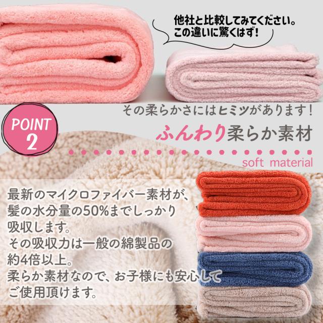 柔らかいマイクロファイバー素材を採用しており、 優しい肌触りでお肌や髪に優しくタッチします。 柔らか素材なので、お子様にも安心してご使用いただけます。