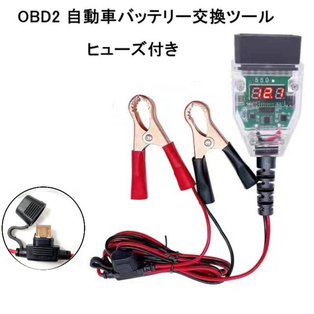 OBD2 自動車 バッテリー交換 メモリーバックアップ ツール OBD - 12V メモリーセーバー ケーブル デジタルディスプレイ 5Aヒューズ付き