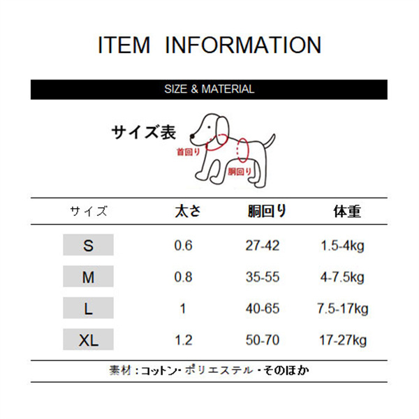 ◎ワンちゃん、猫ちゃんの胸囲のサイズを図ってからのご購入をお願いいたします。