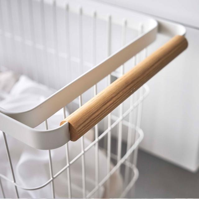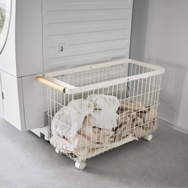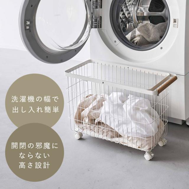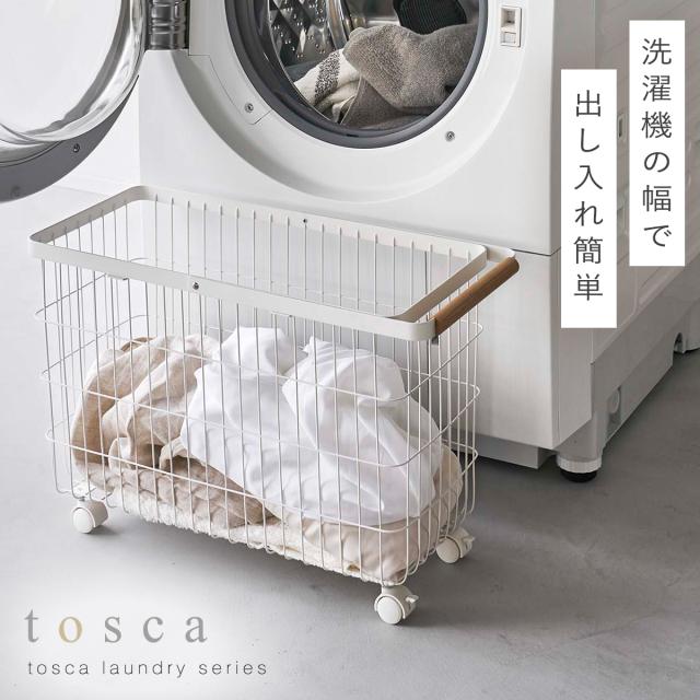 ランドリーバスケット,洗濯カゴ,キャスター付き,洗濯物入れ,ワイド,大きめ,ドラム式洗濯機,扉,干渉しない,ちょうど,高さ,開閉,スタイリッシュ,空間,モダン,ホワイト,白,自宅,おしゃれ,お洒落,オシャレ,デザイン,こだわりアイテム,インテリア,雑貨,一人暮らし,新生活,おすすめ,さっと取り出し,便利アイテム,シンプルデザイン,賃貸,マンション,お片付け,片手,四角,長方形,風呂,洗面所,脱衣所,洗濯機周辺,ランドリー,シリーズ,tosca,トスカ,木製,ハンドル,バー,スチール,組み合わせ,