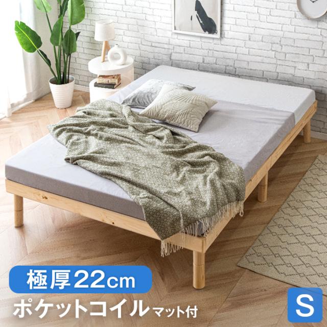【10時〜P5%還元】 シングルベッド マットレス付き 3段階高さ調節 天然木 すのこベッド マットレス付き シングル 木製 ポケットコイルマットレス 北欧 マットレス付 ベッドマットレス コイルマットレス ベッドフレーム ローベッド ベッド 木製