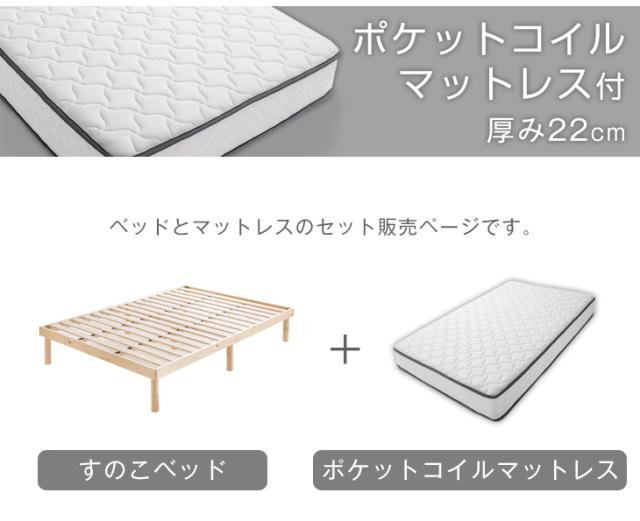 すのこベッド ポケットコイル マットレス 付き シングル フレーム ベッド セット 木製 ベット おしゃれ ベッドフレーム シングルベッド 北欧 スノコベッド