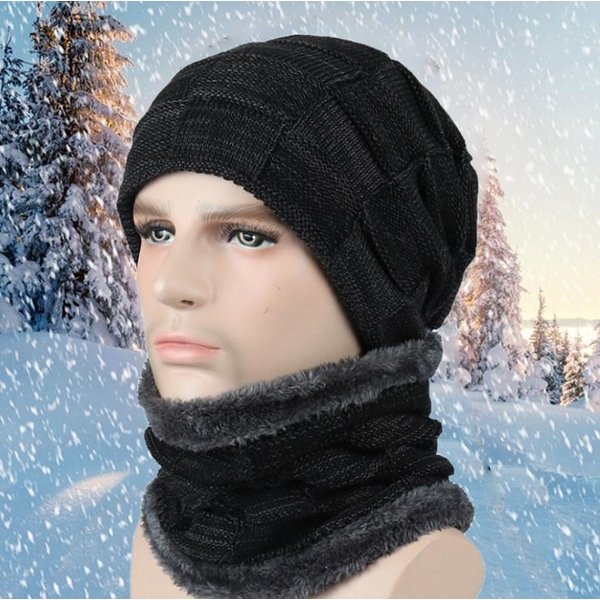 極暖! 裏起毛 ニットキャップ & ネックウォーマー SET 【02】ファー付き ニット帽子 マフラー お揃い スキー スノボ 冬物