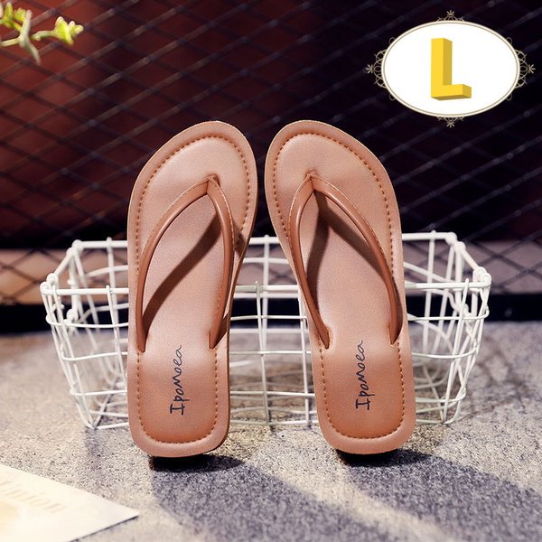 厚底 レザー調 ビーチサンダル 【 ブラウン L 】 シンプル ヒール サンダル 普段使いにも
