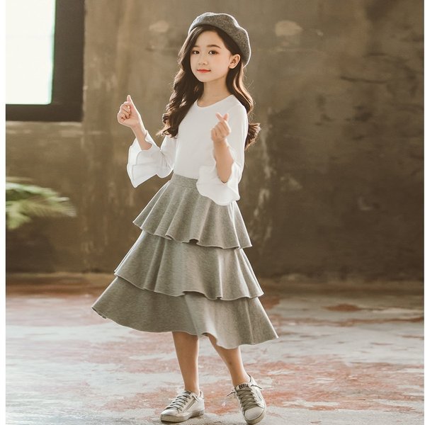 | フリルトップス&3段フレア ロングスカート ミドル丈 クラシック パーティー 正装 セットアップ 子供服 女の子 | ||||||||||