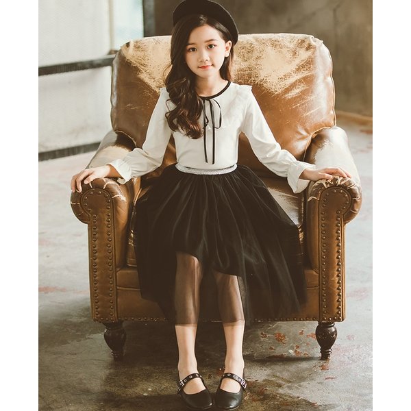 | 白×黒 フリルブラウス&シフォンチュールスカート お出かけ フォーマル セットアップ 子供服 女の子 | ||||||||||