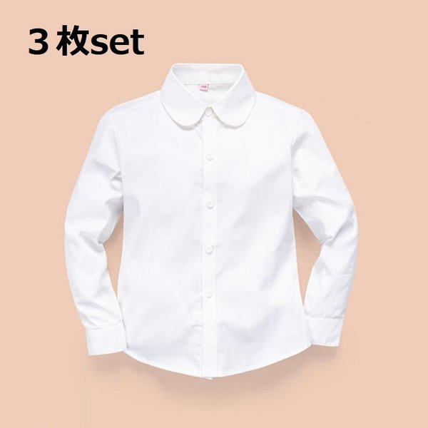 お得な3枚set★綿100% 丸襟 ブラウス【 100cm〜170cm】 ワイシャツ 白シャツ 学生服 フォーマル 冠婚葬祭 制服