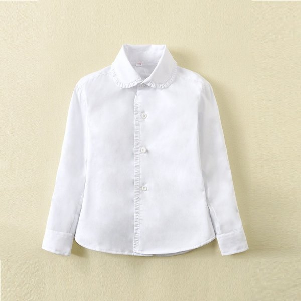 あったか〜い!裏起毛★ 丸襟×フリル ブラウス【110cm〜170cm】ワイシャツ 白シャツ 学生服 フォーマル 冠婚葬祭 制服
