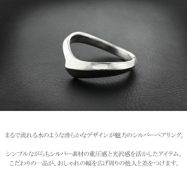 まるで流れる水のような滑らかなデザインが魅力のシルバーペアリング。