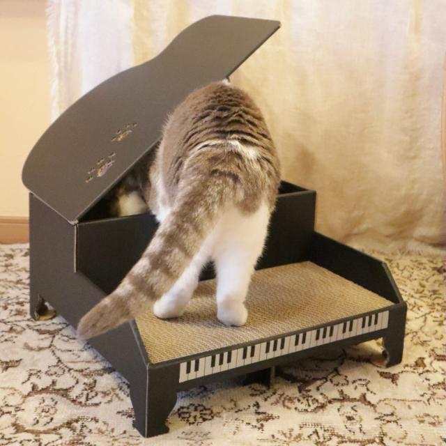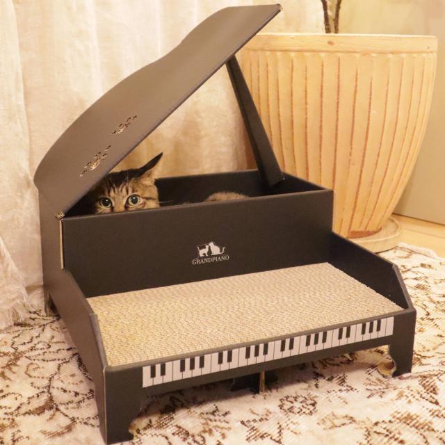 グランドピアノの形をした猫ちゃん用の爪研ぎです。爪を研いでいる姿はまるでピアノ演奏をしているように見えて、写真映えも抜群です。愛らしい猫ちゃんのベストショットを撮る楽しみが増えます。