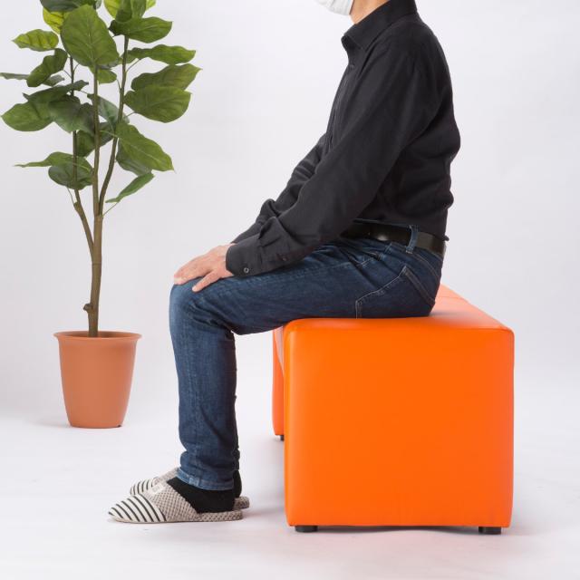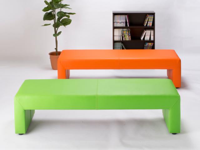 《 背もたれなし パブリックベンチ 業務用 いす 会社 施設 休憩室 PVCレザー おしゃれ ブラック アイボリー ライトグリーン オレンジ 黒 白 緑 》