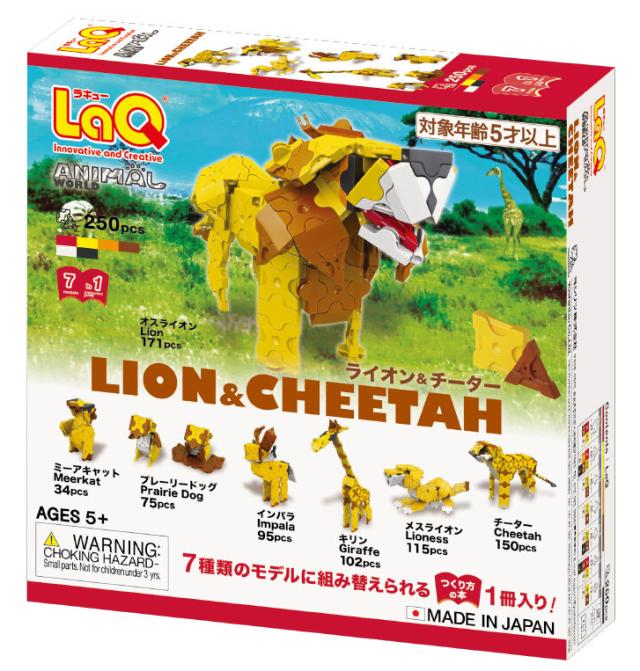動物が作れるアニマルワールドシリーズに「ライオン」と「チーター」が作れるキットが仲間入り。全部で7種類の動物に組み替えられます。