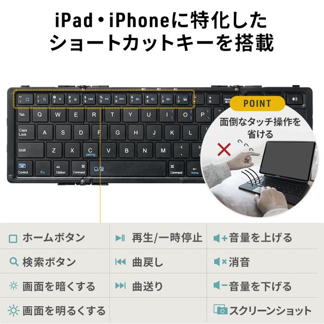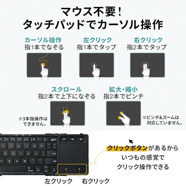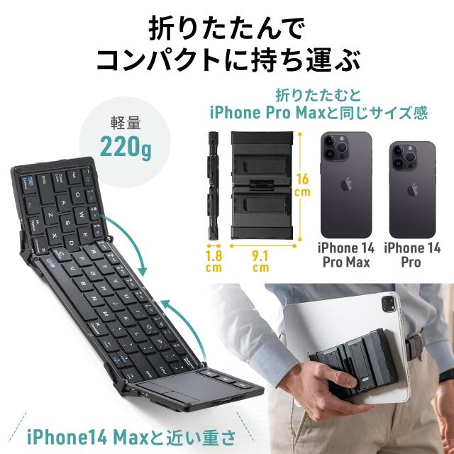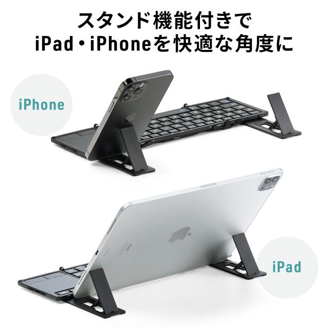 iPad Bluetoothキーボード タッチパッド トラックパッド 折りたたみ スタンド機能 iPhone対応 最大3台切替対応[400-SKB074]