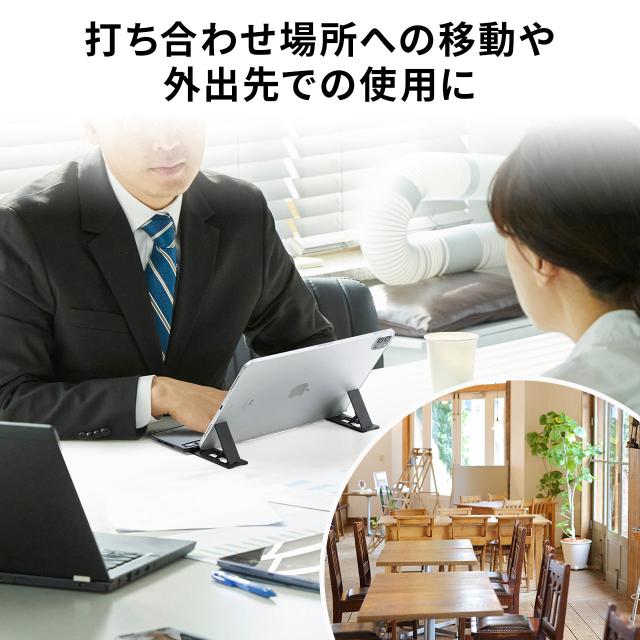 ●キーボード本体にiPadやiPhoneを立てかけられるスタンドを内蔵し、スタンドを使わない時は閉じて収納できるので邪魔になりません。