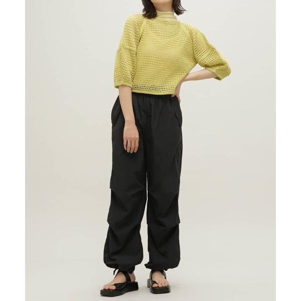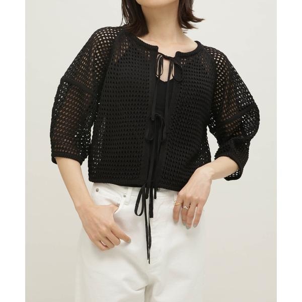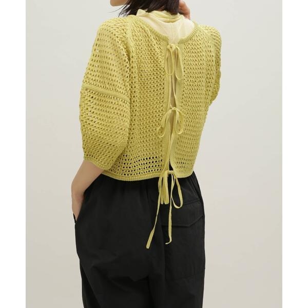 トレンドのメッシュ編みで仕上げた涼やかなニットトップス。アレンジを楽しめる前後2WAYで、ランタンスリーブとクロップド丈がバランス良く様になるデザイン。シアーカットソーと合わせてレイヤードスタイルや、キャミやタンクをインしてシアー感を生かすコーデなど、幅広い着こなしを楽しんで!