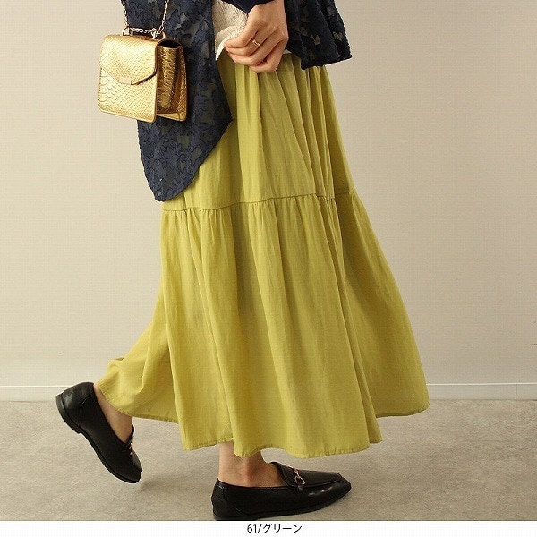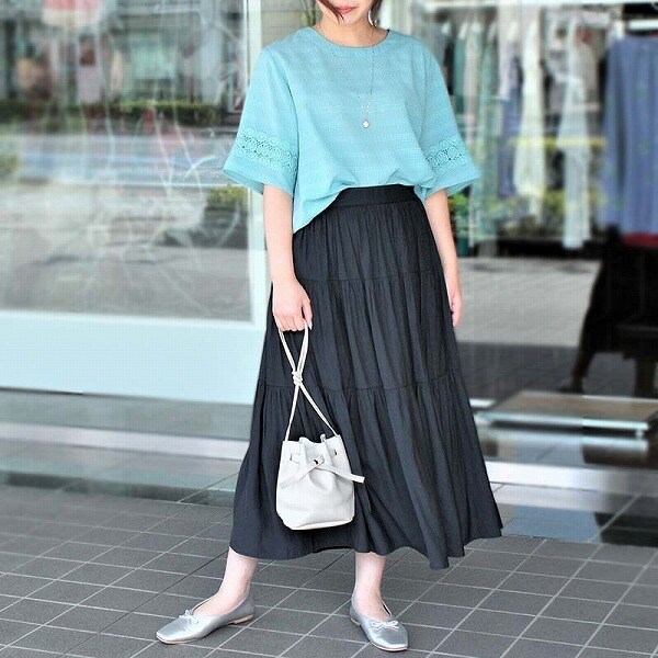 ティアードを入れることによって、トップスも幅広く合わせれるようにしました。