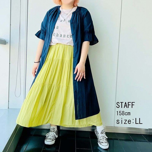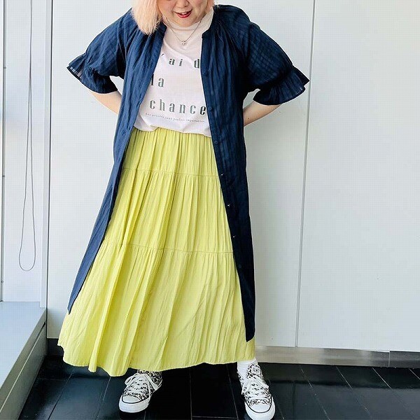 ロング丈のTシャツに合わせてもティアードの位置がバランスのいい位置にくるように拘りました。