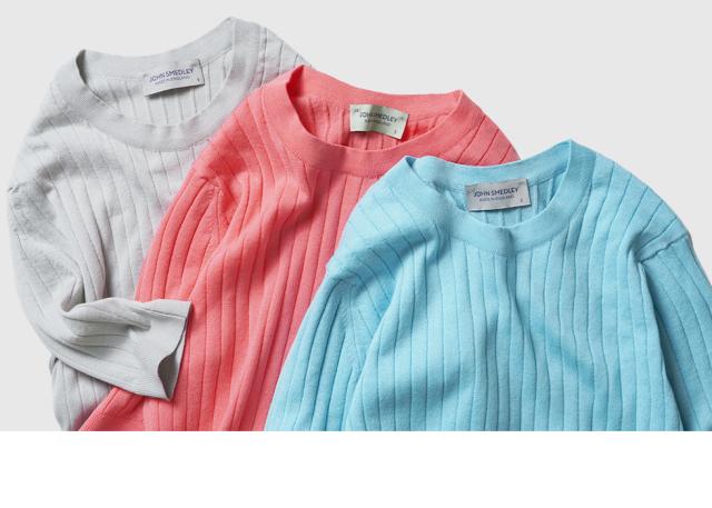 (日本別注)(正規品) JOHN SMEDLEY ジョンスメドレー S4584 レディース 30G 半袖 クルーネック リブニット ニット シーアイランドコットン イギリス製