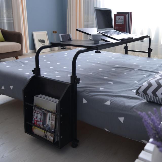【調節可能ベッドテーブル】ベッドサイズに合わせて横幅・高さを調節可能な伸縮ベッドテーブル。幅80〜120×奥行40×高さ60〜90cm、天板サイズ:約幅80×奥行40×高さ1.6cmサイドについているストッパーを調節することで高さ調節が可能に。